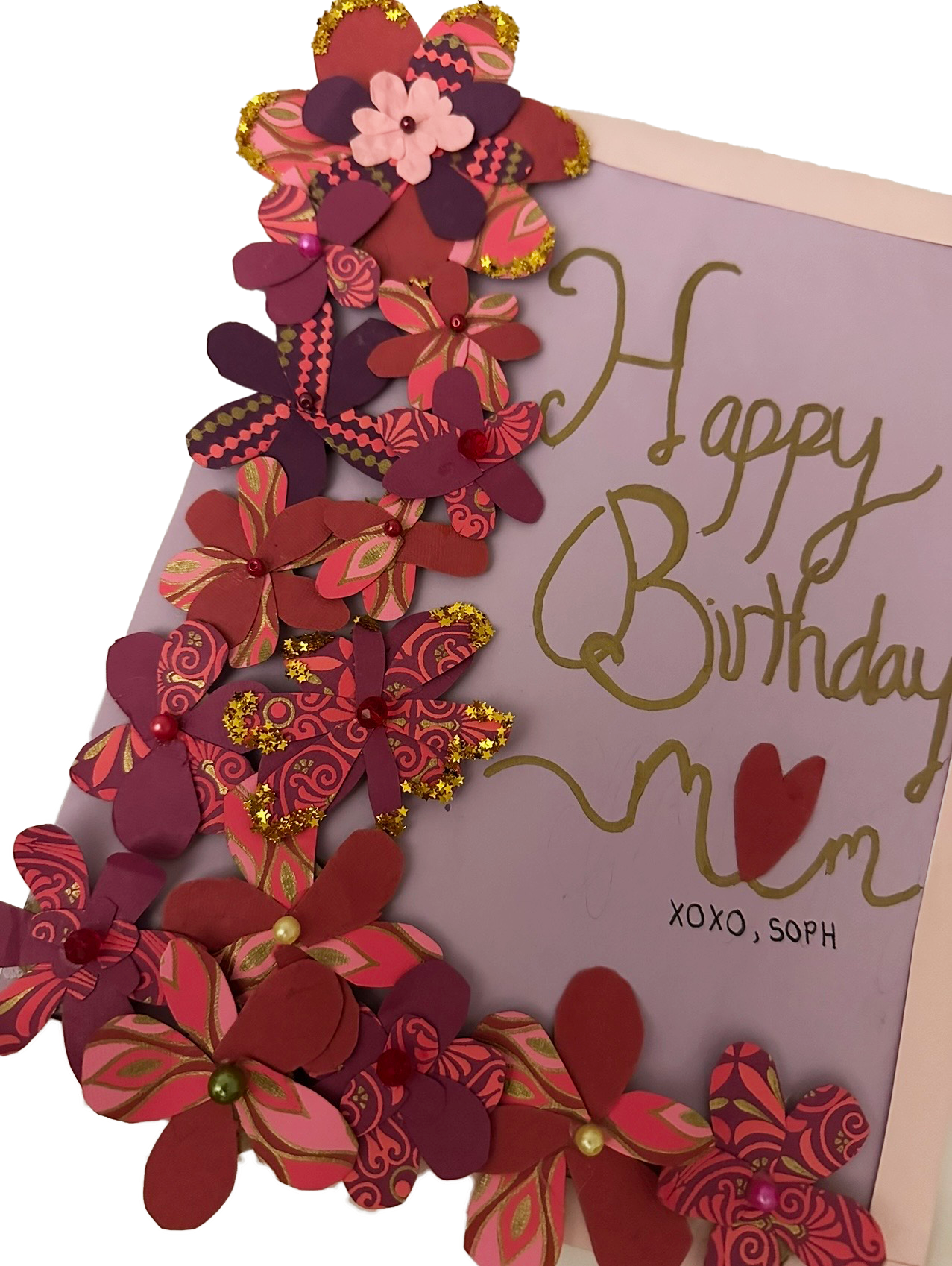 Every year for my relatives’ birthdays, I create handmade cards rooted in care and intention. My personal brand is inspired by flowers and my fascination with their shapes and movement. I design each card from scratch, layering delicate paper flowers with colors and textures that feel personal. Each piece becomes a small, blooming expression of creativity, connection, and gratitude. Here are some of my favorite featured cards:
