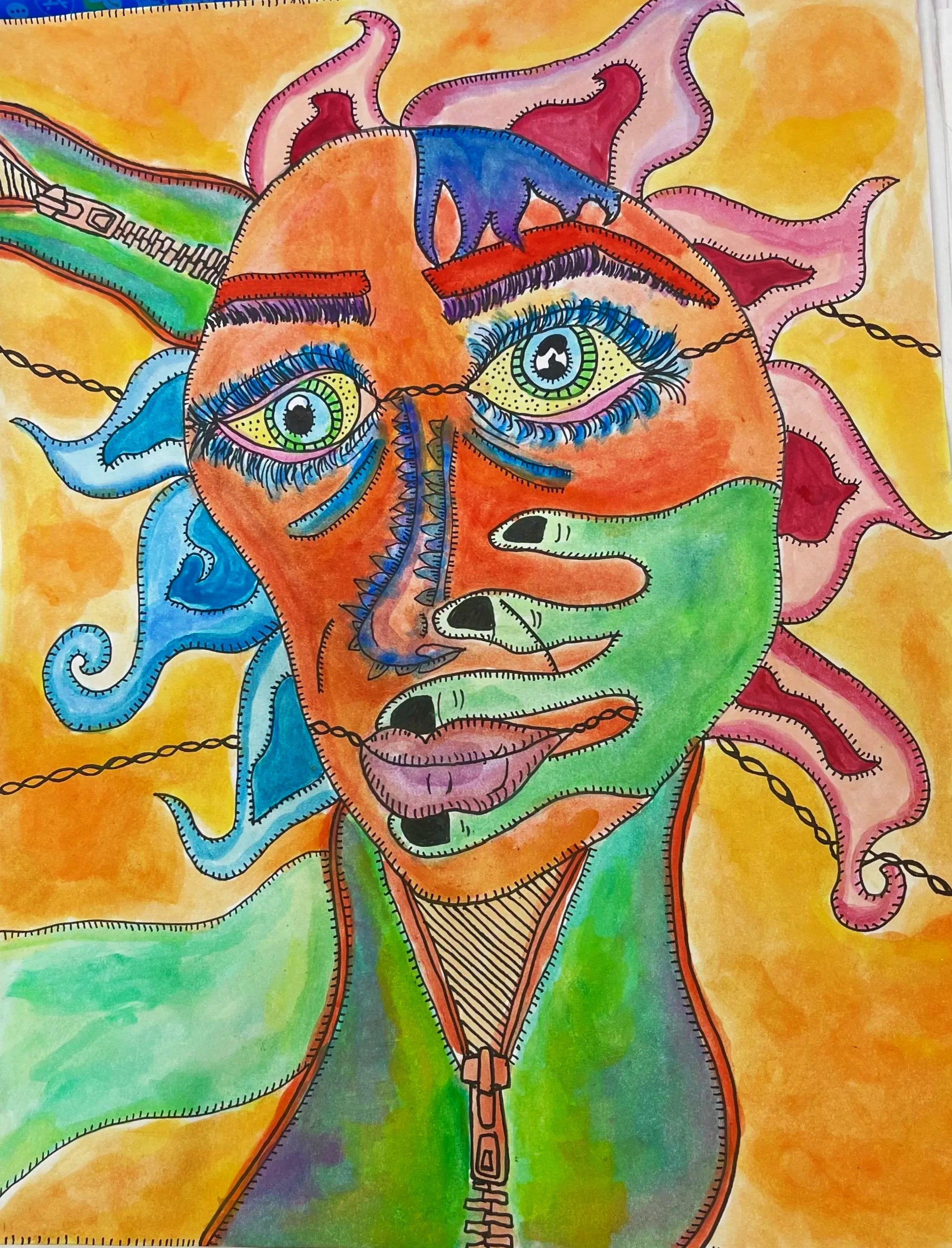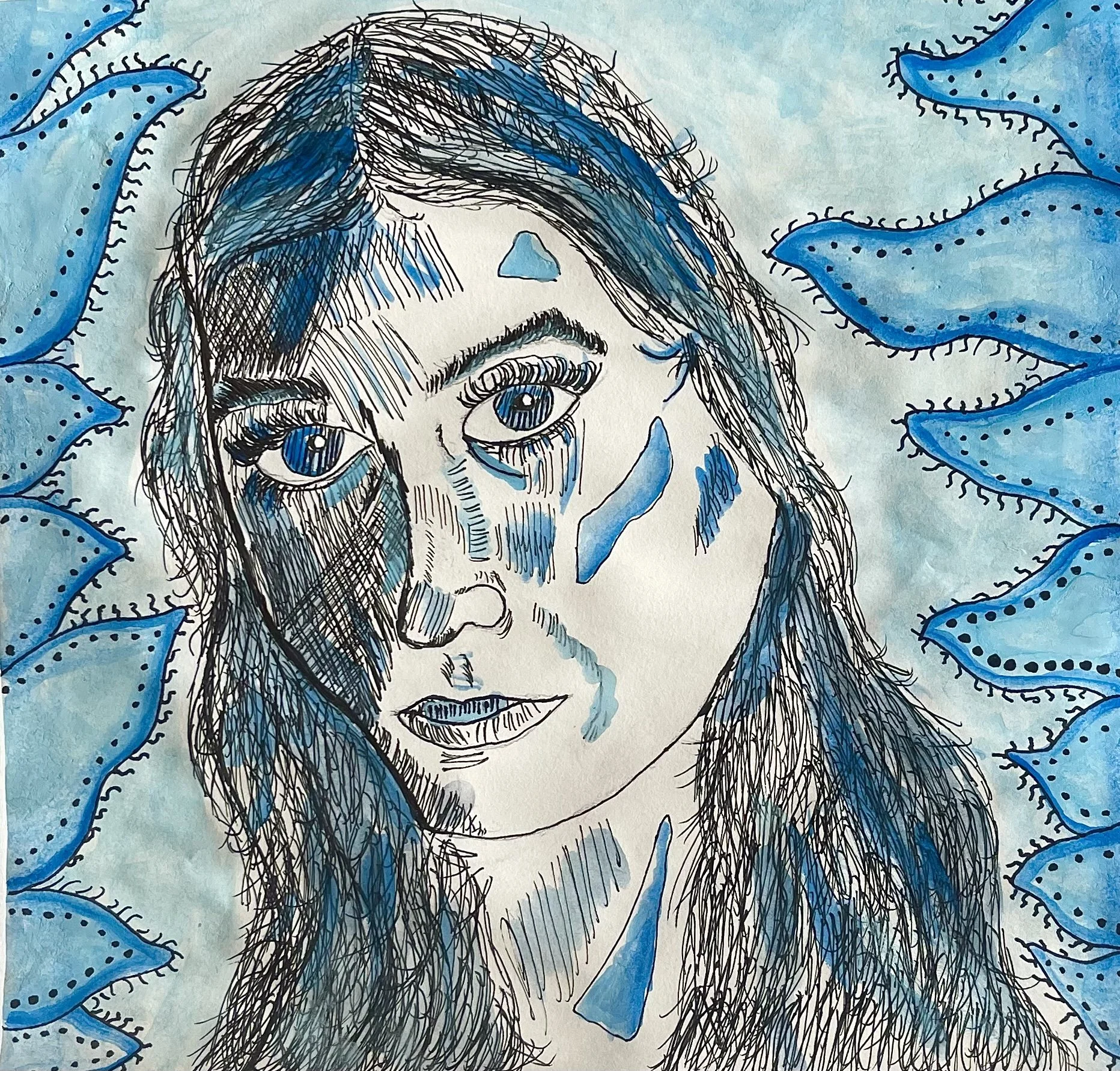 “Stitched Identity”- Paint & Pen