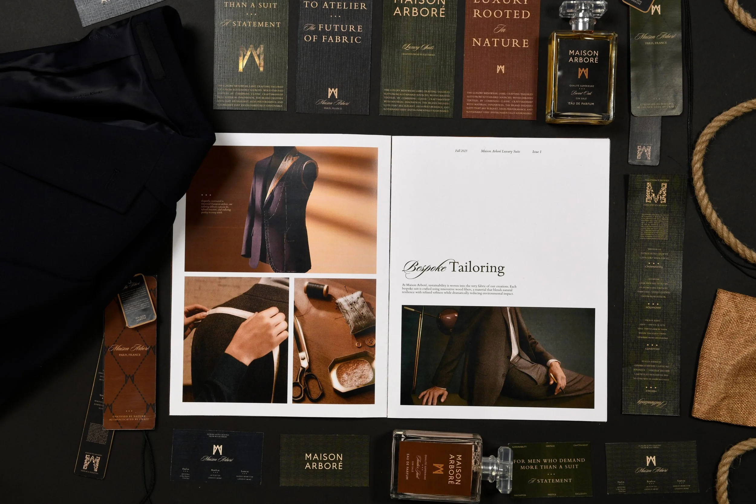 Maison Arboré introduces wood-derived textiles into the world of luxury tailoring through a refined and modern brand identity. By emphasizing craftsmanship, material innovation, and environmental responsibility, the brand positions sustainability as an integral part of contemporary menswear. The result is a suit line that reflects both timeless elegance and forward-thinking design.