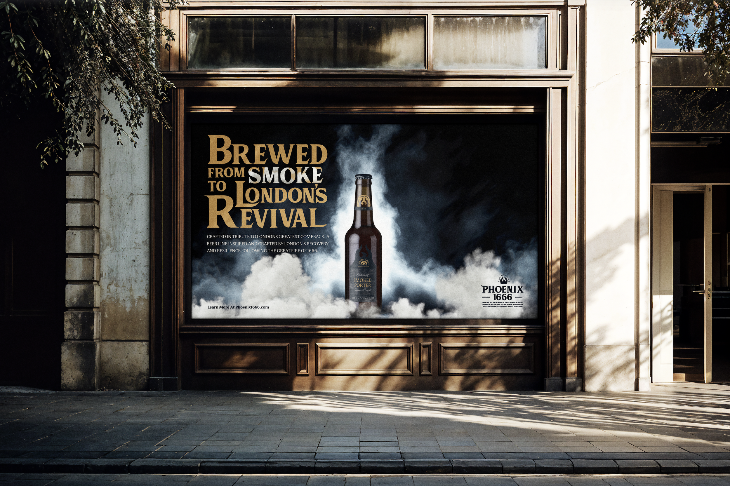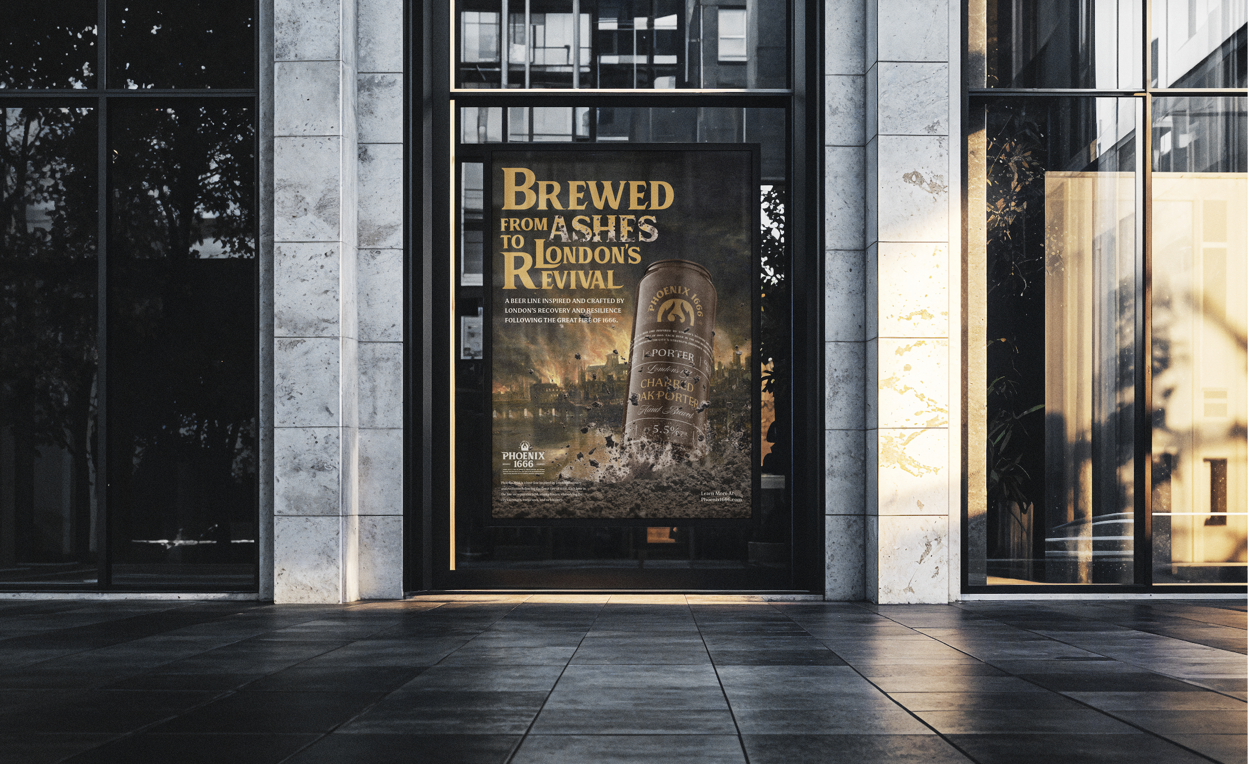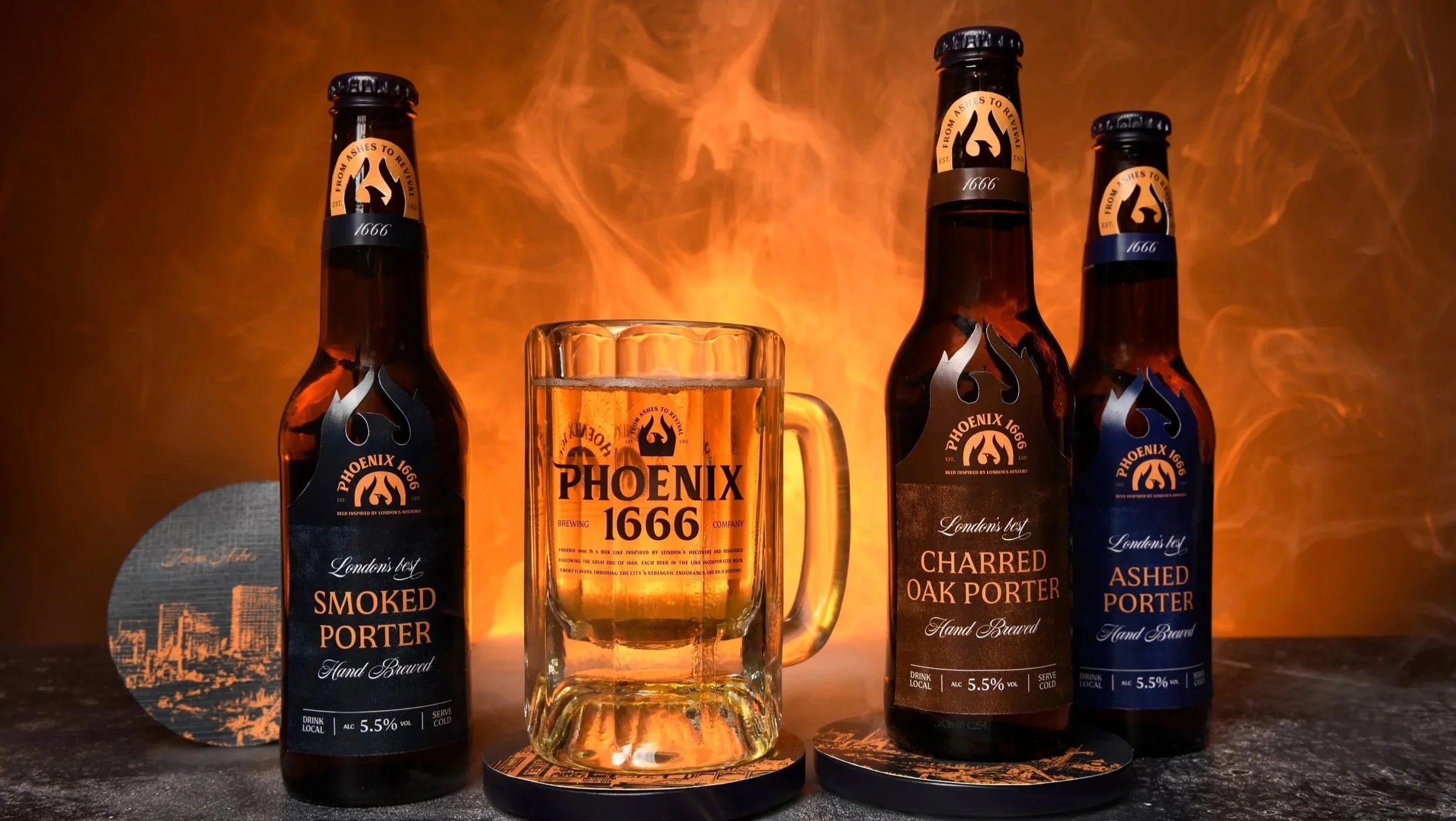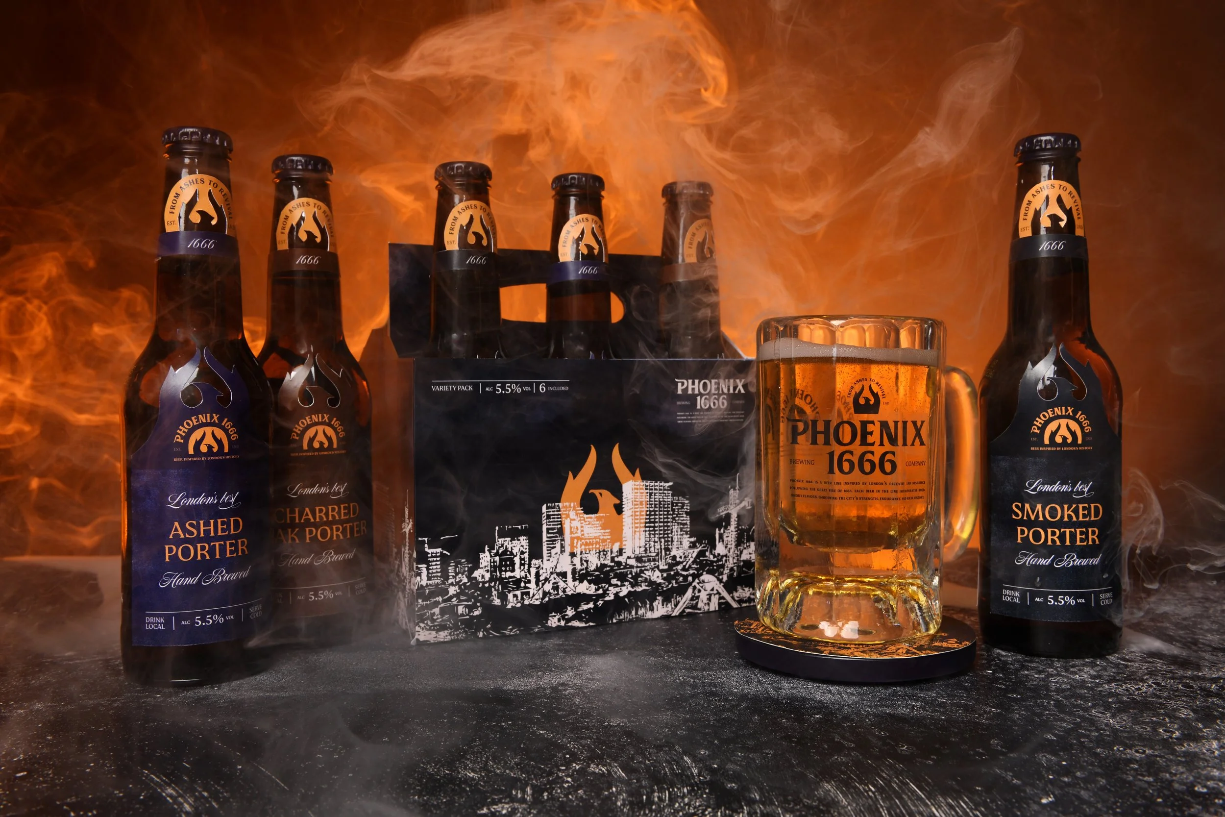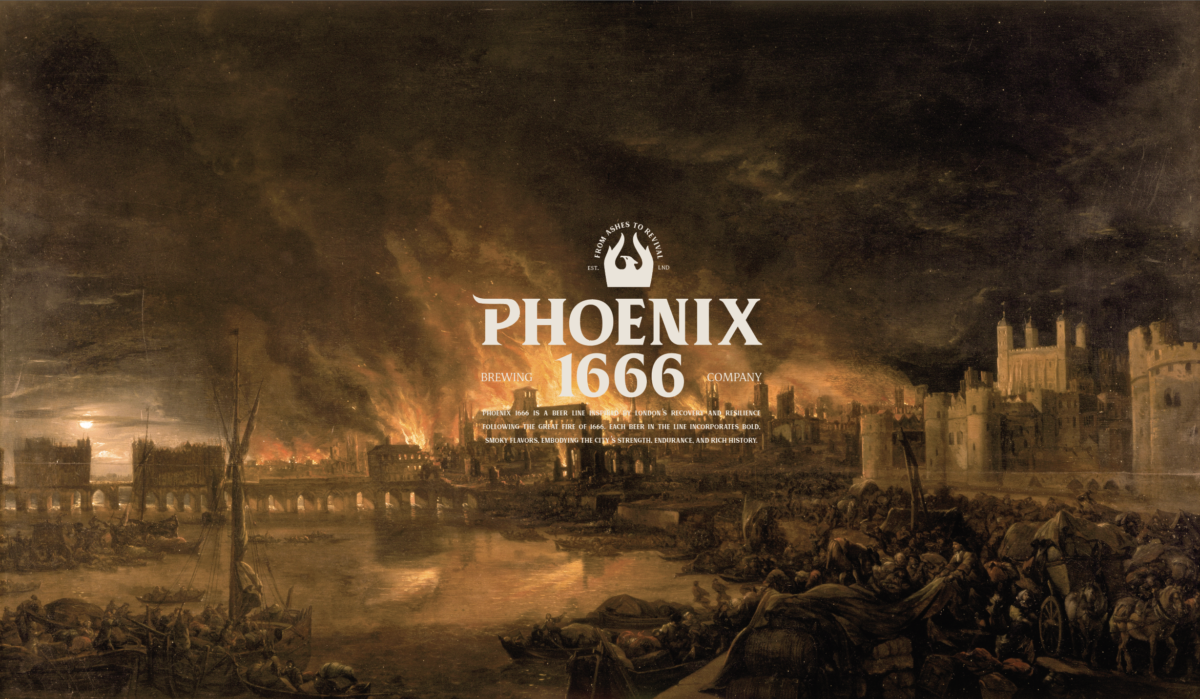 Phoenix 1666 is a porter beer line inspired by London’s recovery following the Great Fire of 1666. The brand draws on the symbolism of the phoenix rising from the ashes, reflecting resilience, strength, and renewal. Each beer incorporates bold, smoky flavors that capture the atmosphere and history of the city.