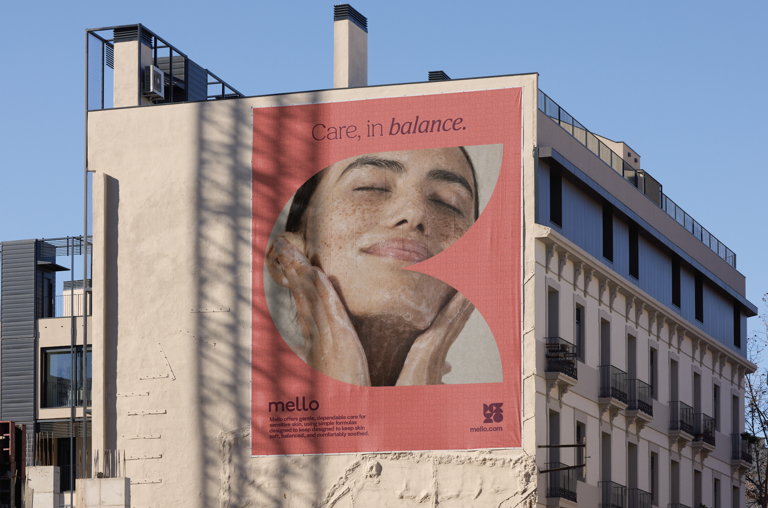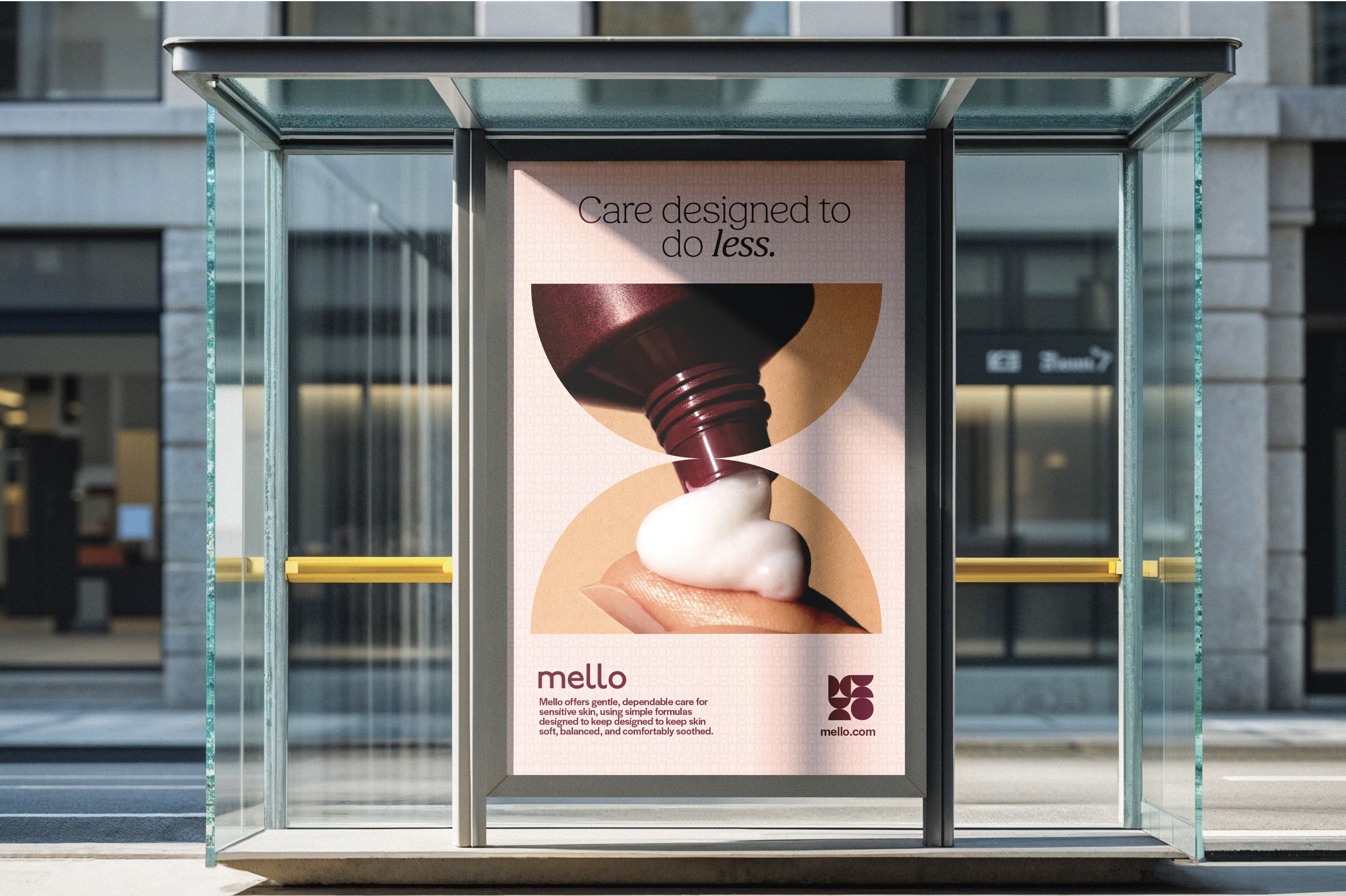 Mello’s advertising concept centers on balance through restraint, positioning skincare as something that supports rather than overwhelms. Instead of focusing on intensity or transformation, the campaign highlights easing, hydrating, and soothing as steady, everyday states. Minimal compositions, soft geometric forms, and controlled color palettes reflect this approach, creating a visual system that feels calm, intentional, and modern. Through simple headlines and quiet imagery, Mello invites a more considered relationship with skincare, one that values comfort, consistency, and doing less.