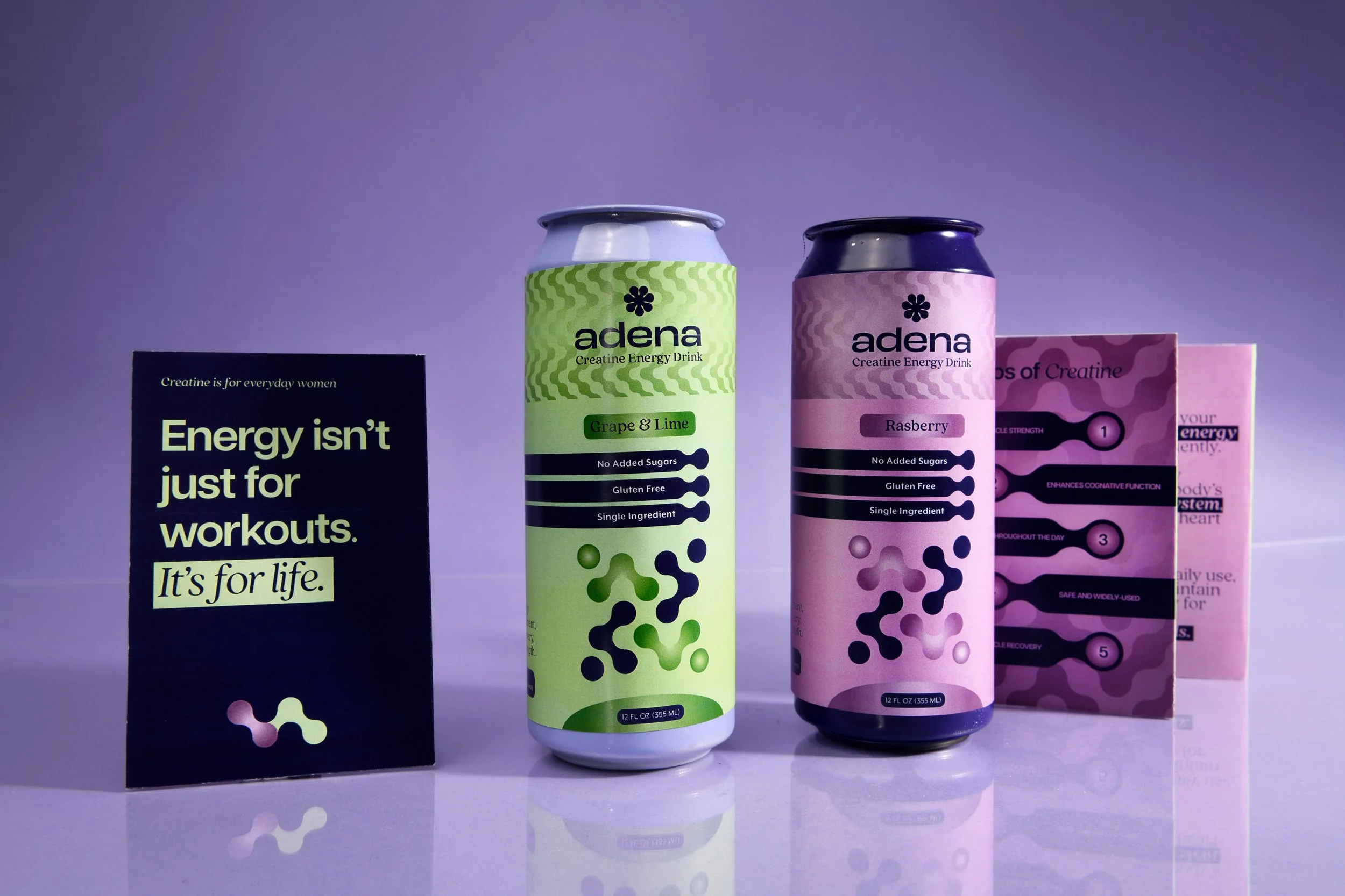 Adena repositions creatine through a brand identity centered on clarity, confidence, and education. The product communicates the science behind creatine while presenting it as a supportive daily supplement for women’s wellbeing. This approach creates a trusted wellness brand that empowers women to incorporate strength, energy, and cognitive support into their everyday routines.