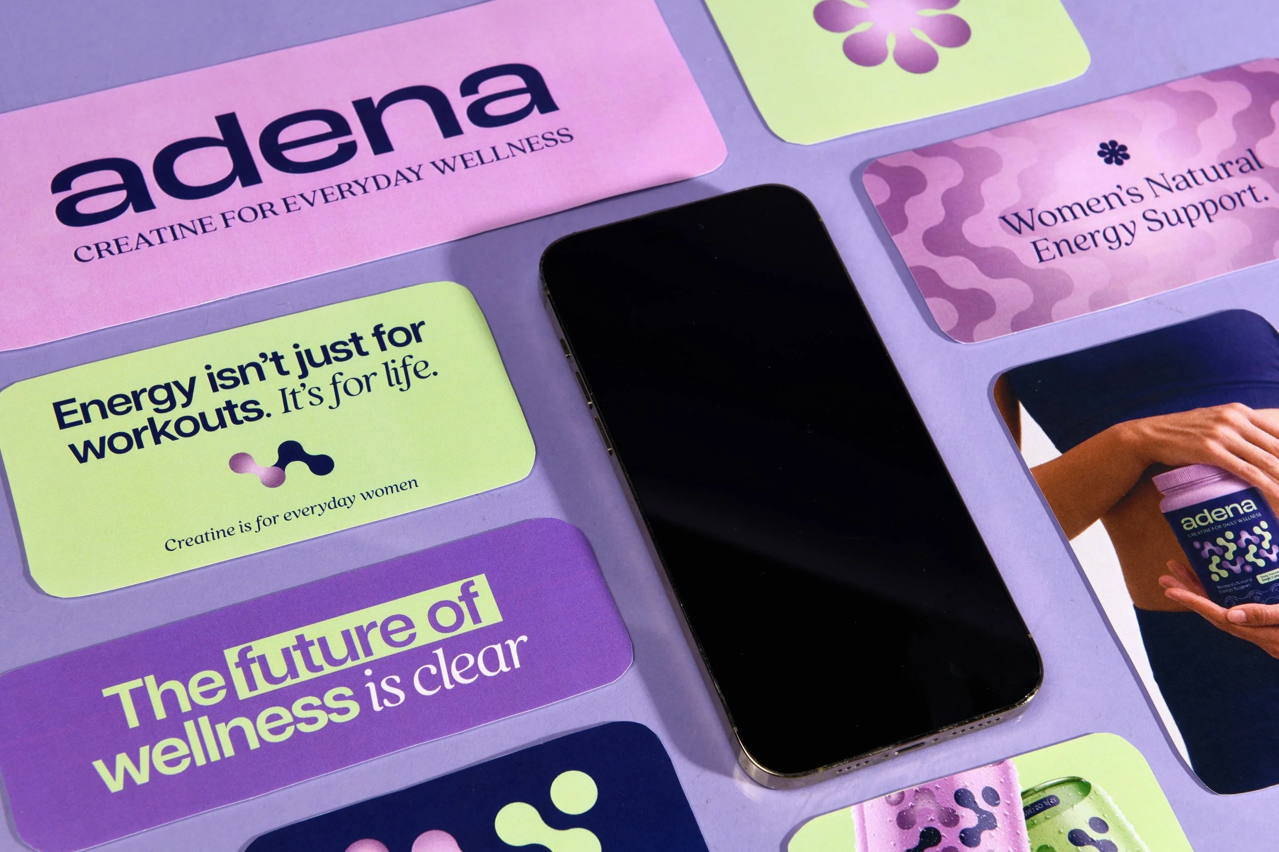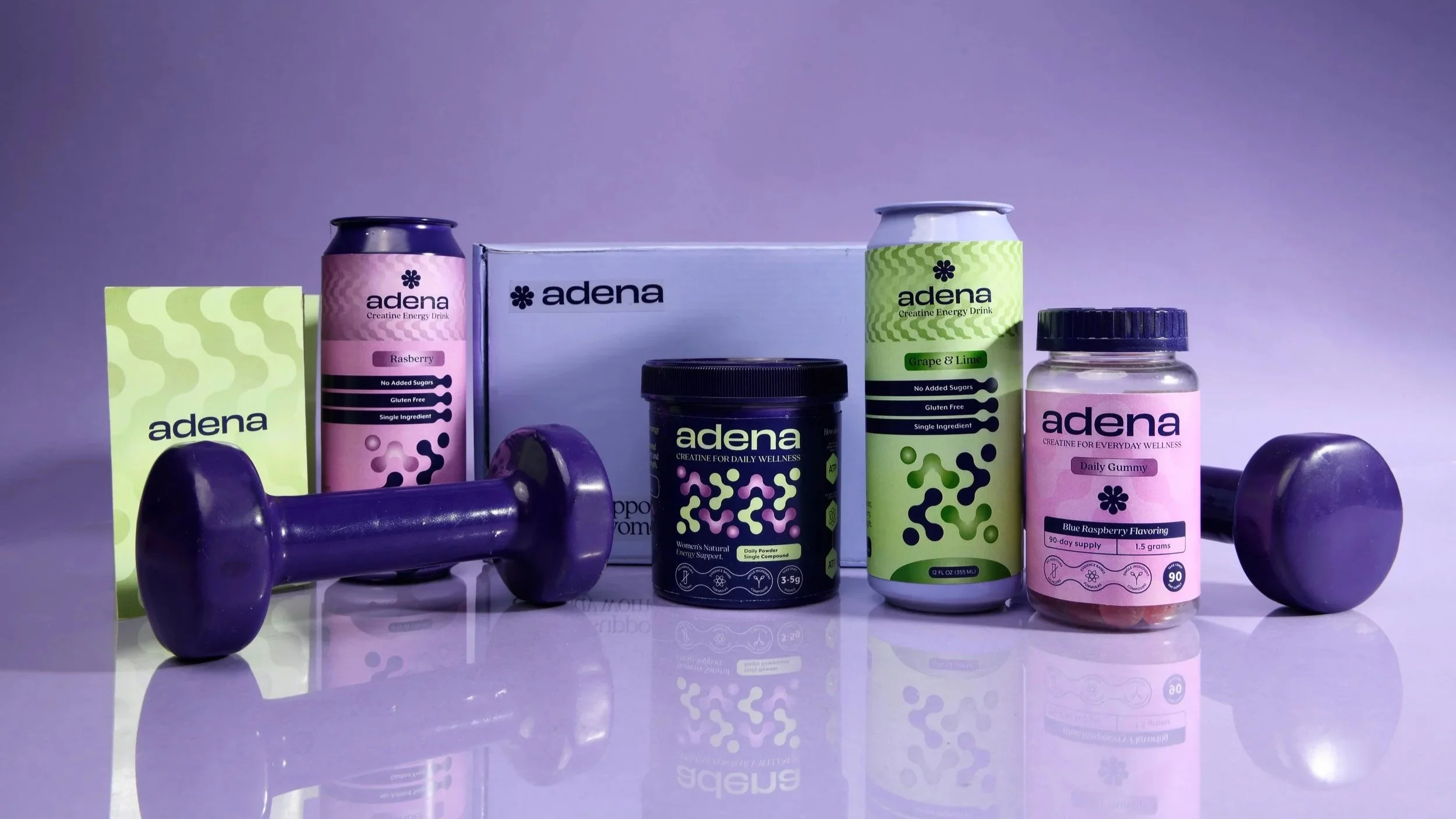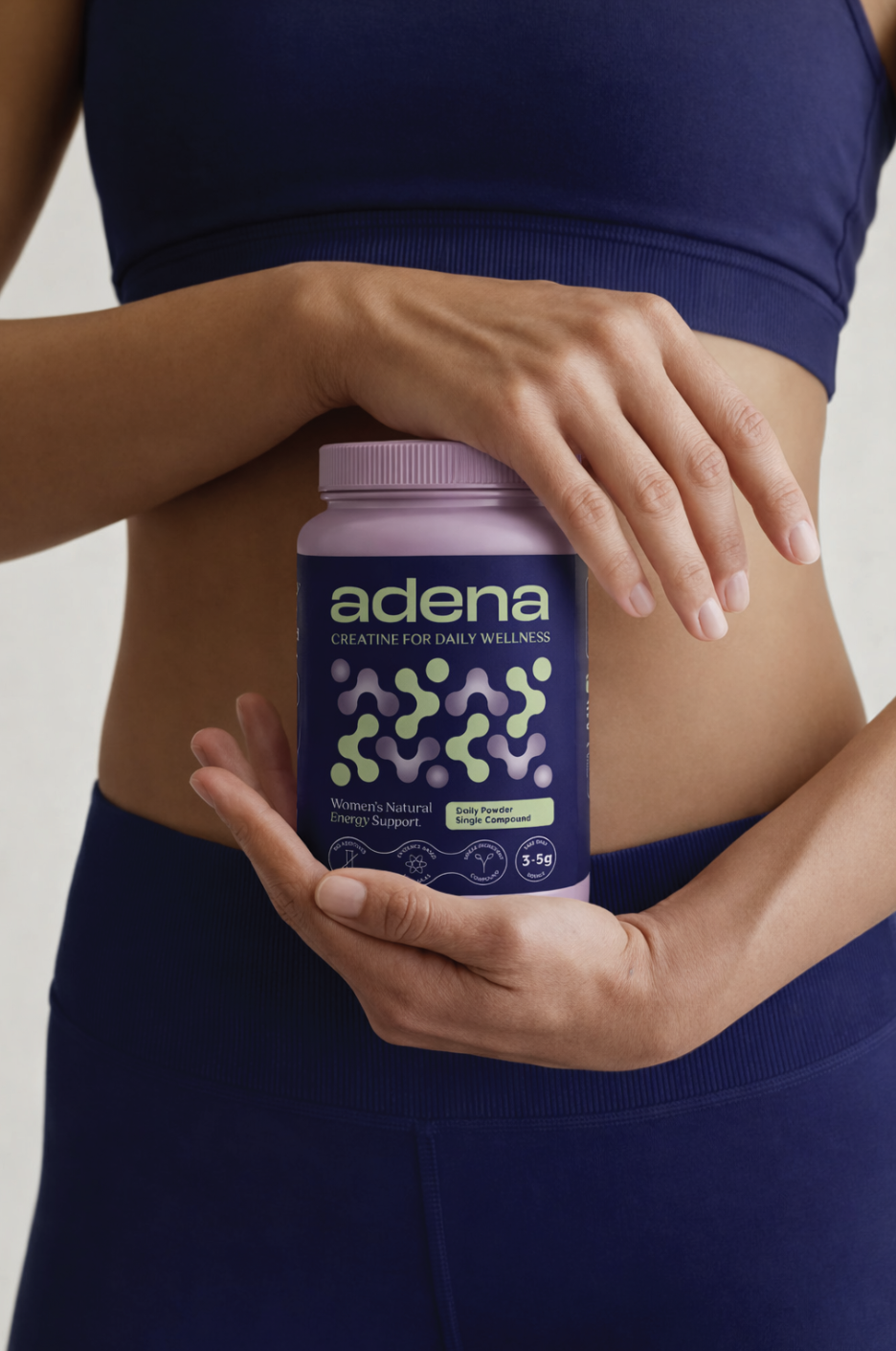 Adena is a creatine supplement brand designed to educate women about the real benefits of creatine and position it as everyday wellness support. Rather than focusing only on athletic performance, the brand frames creatine as a supplement that supports energy, strength, and cognitive performance. Adena aims to build trust through clear information, research-backed messaging, and thoughtful design.