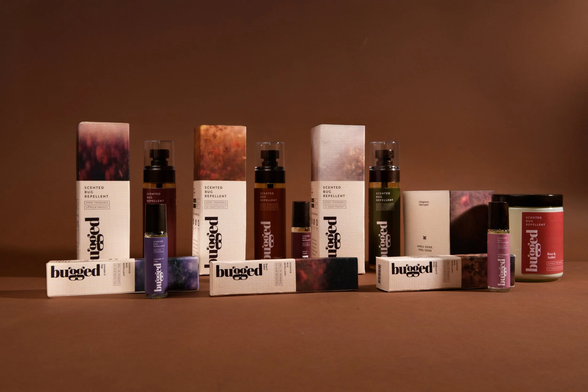Bugged is a scented bug repellent line designed to make insect protection feel clean, pleasant, and easy to use. The product range includes a mist, lotion, candle, and roll-on, combining natural ingredients with refreshing scents like vanilla and citrus. Instead of the typical harsh smell and greasy finish associated with bug spray, Bugged focuses on a lightweight formula that keeps users protected while allowing them to enjoy time outdoors comfortably.